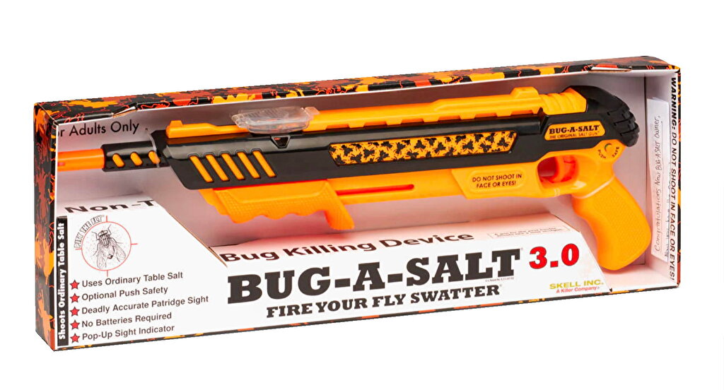 Bug-A-Salt er en helt giftfri metode for å bekjempe fluer i og rundt hjemmet ditt. Gjør det hele mindre kjedelig ved å bruke dette geværet. Ved hjelp av helt vanlig bordsalt blir jakten på fluer enkel.